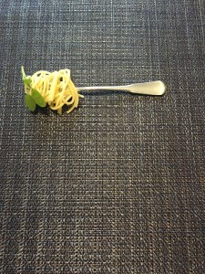 These variations of the spaghetti fork each include a different herb to bring a spring of green to the bland color. This still works as a great swap for the original in the spread because it has the same features, line up, and theme. And yes, I did in fact hand-wrap each spaghetti noodle around the fork (worthy of extra credit, yes?)
